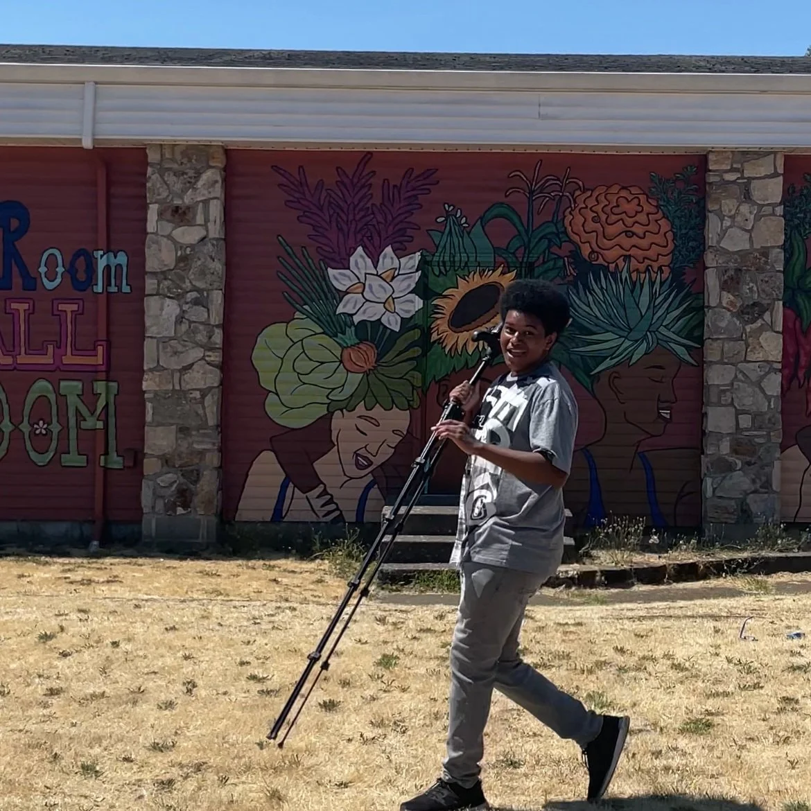 Elijah capturing photos of “There Is Room For All To Bloom” mural.