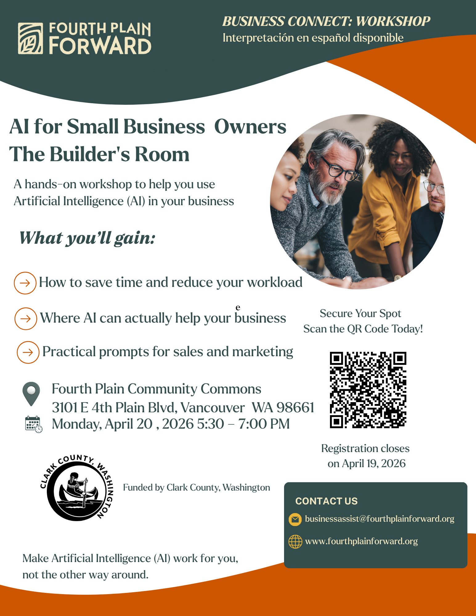 Our goal is to make AI feel useful, not overwhelming. You’ll leave with greater clarity on your business needs, practical prompts you can start using right away, and real examples of how AI can support your growth. Whether you’re just getting started or looking to work smarter, this workshop is here to support you—step by step.